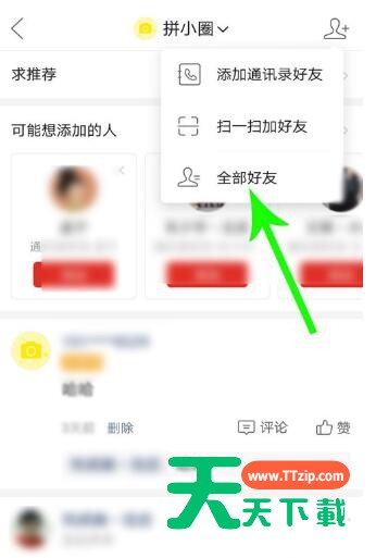 估计有的用户还不了解拼小圈如何设置不让某个好友看的操作,下文天天下载就分享拼小圈设置不让某个好友看的方法,希望对你们有所帮助哦。