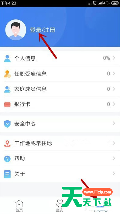 在个人所得税里,点击【个人中心】-【登陆/注册】。