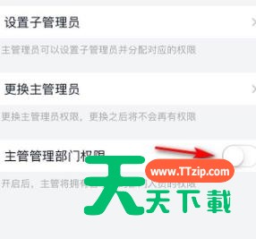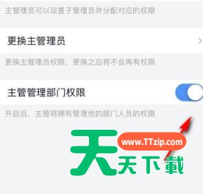 最近钉钉软件的使用人群在迅速提高,很多伙伴对于主管管理部门权限的打开不会操作,下文分享的就是钉钉主管管理部门权限打开方法,大家可以参考一下哦。 钉钉主管管理部门权限打开方法 点击手机桌面上的钉钉,见下图 点击通讯录,见下图 点击管理,见下图 点击管理权限设置,见下图 点击主管管理部门权限后面的灰色的按钮,见下图 当灰色的按钮变成蓝色的按钮就证明已经设置完成了,见下图 看了上面的内容后,是不是觉得操作起来更得心应手了呢? @天天下载 除特别注明外,本站所有文章均为 天天下载 原创,转载请注明出处来自 https://www.ttzip.com/50019.html