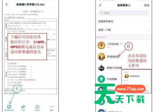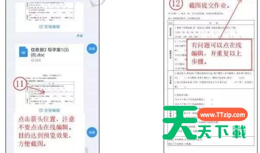 如果作业是电子文档的试题,我们可以直接在线编辑。打开文档,发送给自己的钉钉好友。返回好友对话框可以在线编辑。如果是书面作业,做完拍照即可。