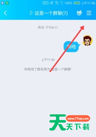 3、到群聊界面后,点击界面右上角的三条横杠。