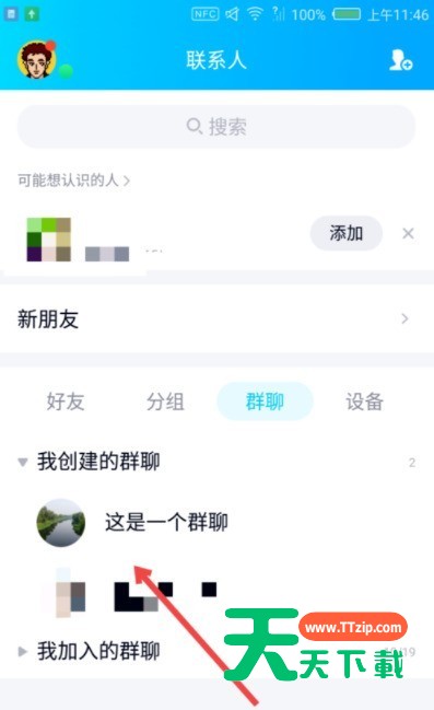 2、入到“联系人”的界面,点击一个群聊并进入。
