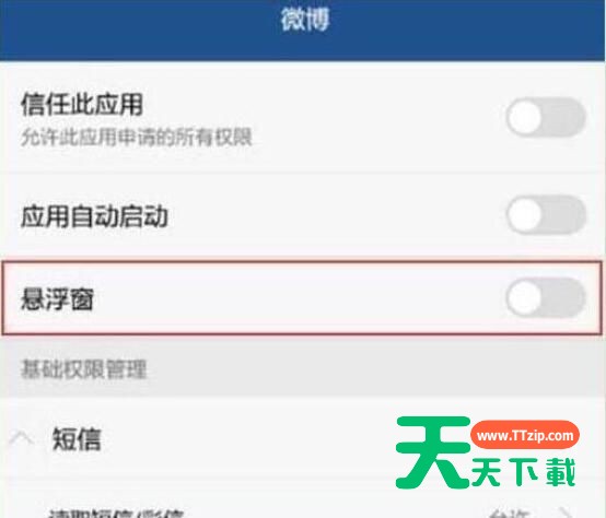 最后点击打开或关闭【悬浮窗】的开关即可打开或关闭应用的悬浮窗,来快速切换了。