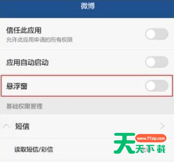 大家或许不知道荣耀手机关掉悬浮窗的操作,那么今日笔者就讲解荣耀手机关掉悬浮窗的操作流程哦,希望能够帮助到大家呢。 荣耀手机关掉悬浮窗的操作流程 我们点击打开荣耀手机桌面上的【设置】 进入设置页面后,找到并点击打开【应用和通知】, 在应用和通知菜单下点击进入【权限管理】, 进入如下图所示页面后,点击选择需要设置悬浮窗的应用, 最后点击打开或关闭【悬浮窗】的开关即可打开或关闭应用的悬浮窗。 以上就讲解了荣耀手机关掉悬浮窗的操作流程,希望有需要的小伙伴都来学习哦。 @天天下载 除特别注明外,本站所有文章均为 天天下载 原创,转载请注明出处来自 https://www.ttzip.com/50367.html