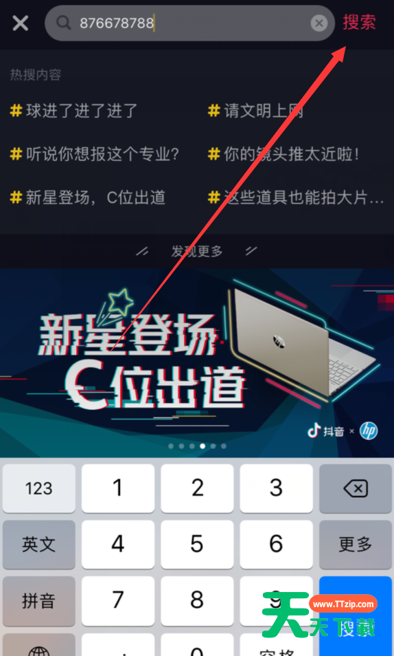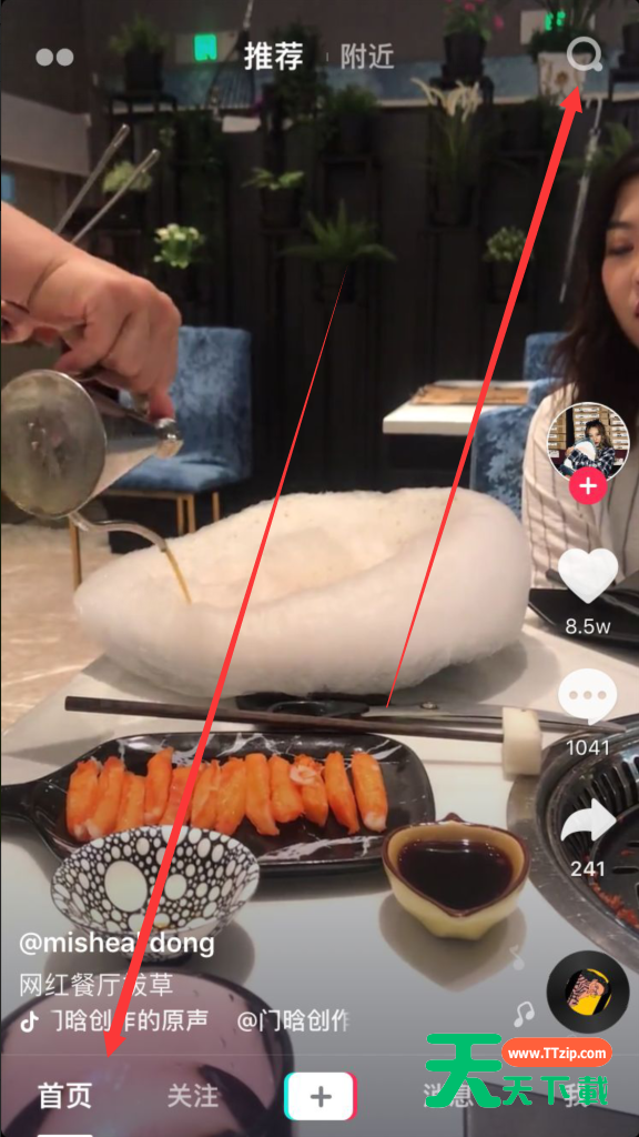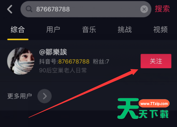 亲们想知道抖音怎么找人的操作吗?下面就是天天下载整理的抖音中快速找人的具体教程,赶紧来看看吧,希望能帮助到大家哦! 抖音中快速找人的具体教程 1、点击进入抖音,点击切换至首页,点击右上角的搜索图标,如下图所示: 2、输入抖音号,点击【搜索】, 3、点击右侧的【关注】即可, 还可以点击头像,查看个人主页,在这里也可以点击【关注】。 以上就是天天下载为大家带来的抖音怎么找人操作方法,更多手机教程尽在天天下载! @天天下载 除特别注明外,本站所有文章均为 天天下载 原创,转载请注明出处来自 https://www.ttzip.com/50372.html