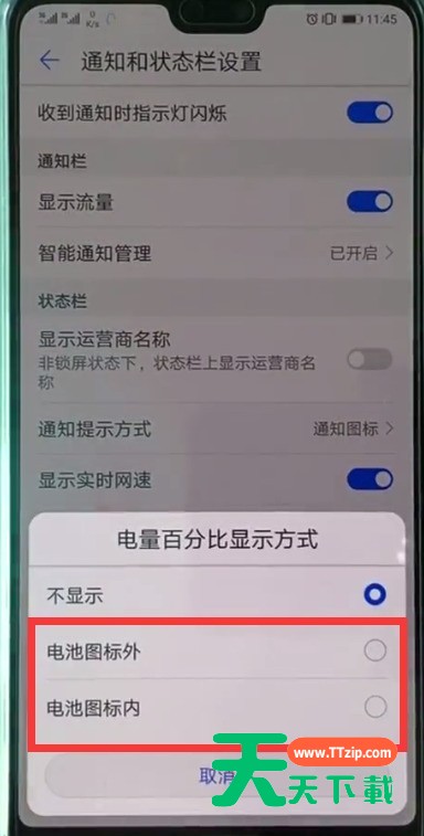 有时候使用华为p20时,显示电量百分比怎么办呢?别急,下文就是华为p20显示电量百分比的方法,一起看看去吧。 华为p20显示电量百分比的方法 1、我们在桌面找到【设置】,然后点击打开, 2、下拉,点击进入【应用和通知】, 3、点击【通知和状态栏设置】, 4、点击【电量百分比显示方式】, 在弹出来的选项中选择【电池图标内】,或者【电池图标外】,即可显示电量百分比,天天下载是觉得,电池图标外的显示方式要看得清晰些。 以上就是天天下载为大家带来的华为p20怎么显示电量百分操作方法,更多手机教程尽在天天下载! @天天下载 除特别注明外,本站所有文章均为 天天下载 原创,转载请注明出处来自 https://www.ttzip.com/50386.html