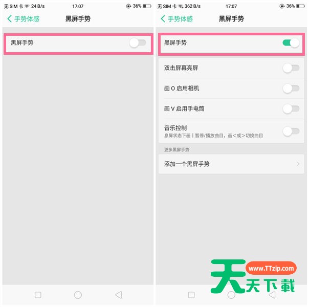 3、进入后开启【黑屏手势】开关,可以看到以下界面。