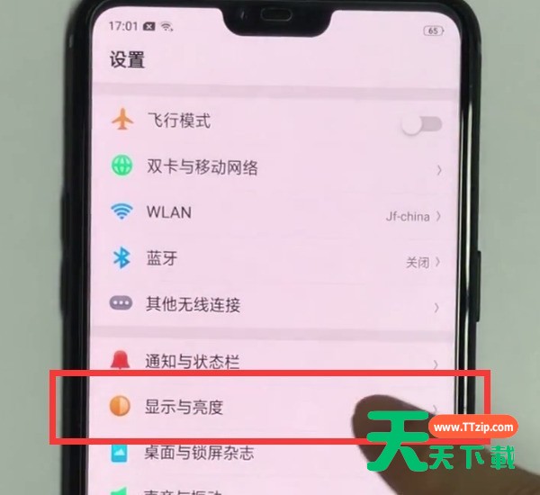 2、下拉点击打开【显示与亮度】