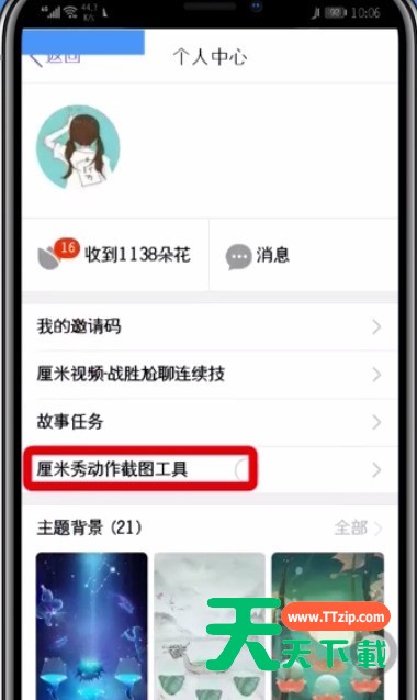 很多人不知道qq厘米秀怎么截动作图?今日为你们带来的文章是关于qq厘米秀中截动作图的操作方法,还有不清楚小伙伴和天天下载一起去学习一下吧。 qq厘米秀中截动作图的操作方法 1、首先进入qq,点击左上角的【个人头像】。 点击厘米秀, 2、点击打开【个人中心】。 3、点击选择【厘米秀截图工具】。 4、点击【立即开启截图工具】。 点击【确定】, 5、点击选择【自定义】。 6、点击选择【动作】和【配声音】。 7、然后滑动按钮,就可以开始截图了。 以上就是天天下载为大家带来的qq厘米秀怎么截动作图操作方法,更多手机教程尽在天天下载! @天天下载 除特别注明外,本站所有文章均为 天天下载 原创,转载请注明出处来自 https://www.ttzip.com/50814.html