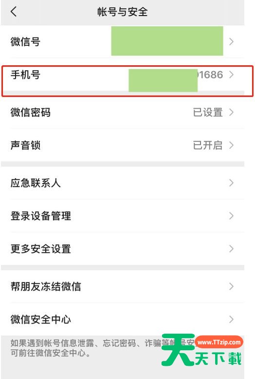有很多小伙伴反映说,自己还不晓得微信怎么更换手机号的操作,而下文就介绍了微信中更换手机号的具体方法,有需要的伙伴可以参考哦。 微信中更换手机号的具体方法 1、轻触右下方的【我】 2、找到【设置】点击后面的小箭头进入。 3、找到【账号与安全】点击后面的小箭头进入。 4、点击【手机号】进入。 5、点击【更换手机号】。 6、输入新的手机号。 7、输入新手机号收到的验证码,即可更换成功。 以上就是天天下载为大家带来的微信怎么更换手机号操作方法,更多手机教程尽在天天下载! @天天下载 除特别注明外,本站所有文章均为 天天下载 原创,转载请注明出处来自 https://www.ttzip.com/51013.html