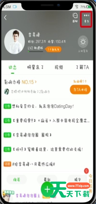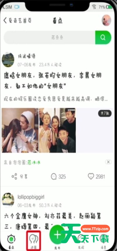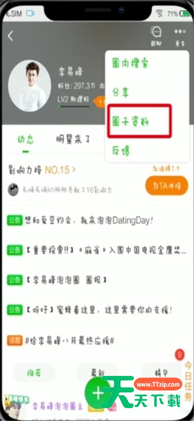 今天天天下载给大家讲解爱奇艺泡泡圈取消关注的操作方法,有需要或者有兴趣的小伙伴们可以看一看下文,相信对大家会有所帮助的。 爱奇艺泡泡圈取消关注的操作方法 1、首先点击“泡泡” 2、点击“进圈”,点击“查看全部”我加入的圈子 3、选择要退圈的圈子 4、点击右上角“更多” 5、点击“圈子资料” 6、上滑屏幕,点击“退出圈子”即可 以上就是天天下载为大家带来的爱奇艺泡泡圈怎么取消关注操作方法,更多手机教程尽在天天下载! @天天下载 除特别注明外,本站所有文章均为 天天下载 原创,转载请注明出处来自 https://www.ttzip.com/51034.html