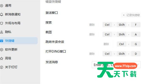 最近有不少的钉钉用户们,会询问天天下载怎么设置截图快捷键?今日在这篇文章内天天下载就为你们带来了钉钉中设置截图快捷键的操作方法。 钉钉中设置截图快捷键的操作方法 1第一步,点击设置 我们打开钉钉软件,然后我们点击左上角的头像功能,再点击下面的设置功能。 2第二步,点击快捷键 我们进入设置的页面之后,我们点击左侧的快捷键按钮,如图所示。 3第三步,更改快捷键 我们进入快捷键页面之后,找到自己想要更改的快捷键进行更改即可。 以上就是天天下载为大家带来的钉钉怎么设置截图快捷键操作方法,更多手机教程尽在天天下载! @天天下载 除特别注明外,本站所有文章均为 天天下载 原创,转载请注明出处来自 https://www.ttzip.com/51039.html