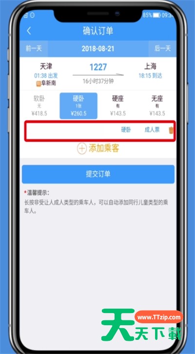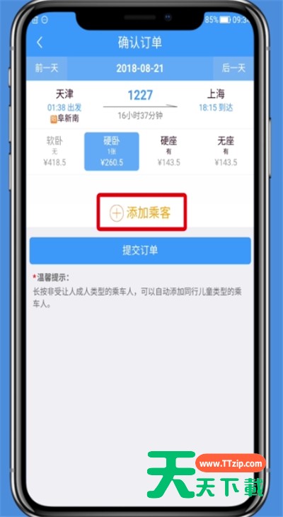 今天给大家讲的是铁路12306怎么购买儿童票.的使用方法,对铁路12306中购买儿童票的简单步骤感兴趣的同学们就一起学习下具体方法吧! 铁路12306中购买儿童票的简单步骤 1、打开铁路12306 APP,在首页填写所要购买的车票信息,点击“查询车票” 2、选择要购买的车次 3、点击“添加乘客”,选择成人乘客 4、长按乘客,会自动添加一张儿童票 5、点击“提交订单”,进行支付即可 以上就是天天下载为大家带来的铁路12306怎么购买儿童票操作方法,更多手机教程尽在天天下载! @天天下载 除特别注明外,本站所有文章均为 天天下载 原创,转载请注明出处来自 https://www.ttzip.com/51052.html