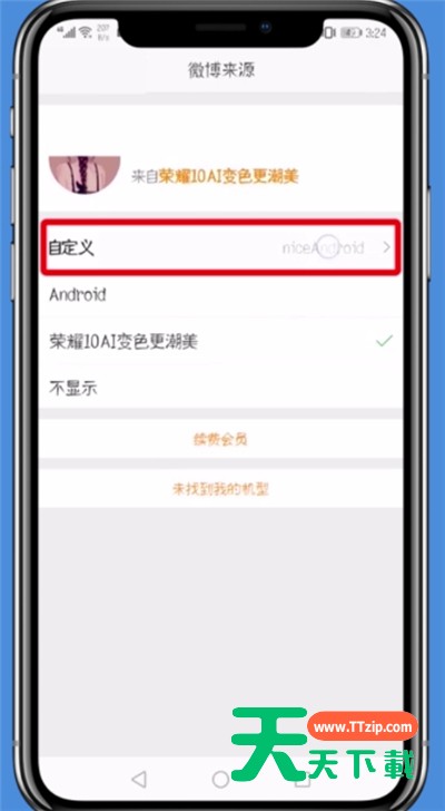 你们知道微博怎么自定义手机型号吗?怎么样开启这项功能呢?对此感兴趣的用户可以随天天下载去下文看看微博中自定义手机型号的详细方法。 微博中自定义手机型号的详细方法 1、打开微博,点击“我” 2、点击“会员” 3、点击“微博来源” 4、点击“自定义” 5、输入自定义名称,点击“保存”即可 以上就是天天下载为大家带来的微博怎么自定义手机型号操作方法,更多手机教程尽在天天下载! @天天下载 除特别注明外,本站所有文章均为 天天下载 原创,转载请注明出处来自 https://www.ttzip.com/51068.html