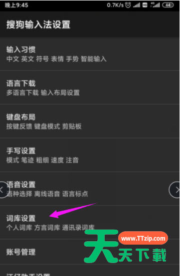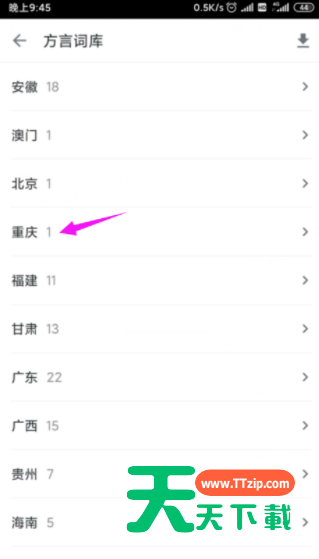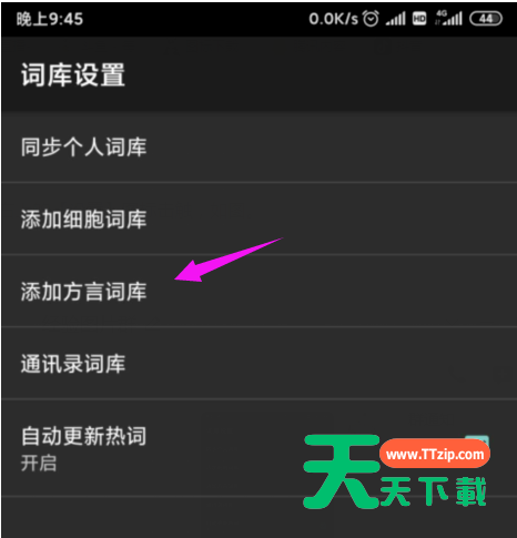 一些网友入手搜狗输入法却还不会添加方言,而本节就介绍了搜狗输入法添加方言的操作内容,还不会操作的小伙伴就跟着天天下载学习一下吧,希望对你们有所帮助。 搜狗输入法添加方言的简单教程分享 1、要添加各地方言词语,按击开【输入法】下的【我的】,如图。 2、继续右上的【设置】图标击触,如图。 3、【词库设置】也小手按开,如图。 4、【添加方言词库】也击开,如图。 5、选择我们自己的方言词库,如图。 6、直接按【下载】就可以使用的,如图。 快来学习学习搜狗输入法添加方言的简单教程吧,一定会帮到大家的。 @天天下载 除特别注明外,本站所有文章均为 天天下载 原创,转载请注明出处来自 https://www.ttzip.com/51279.html