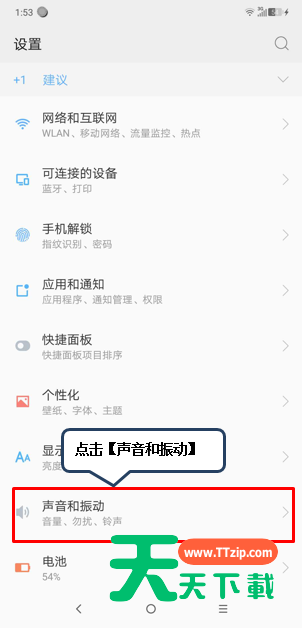 2、找到并点击【声音和振动】。