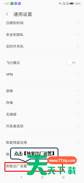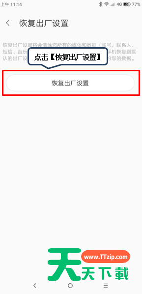 或许大家对联想z6是有一些了解的,但是大家知道恢复出厂设置的操作吗?今天天天下载就来分享联想z6恢复出厂设置的操作方法,大家可以去看一看哦。 联想z6恢复出厂设置的操作方法 1、在【待机界面】点击【设置】。 2、点击【通用设置】。 3、点击【恢复出厂设置】。 4、点击【恢复出厂设置】。 5、点击【恢复】,手机进行恢复出厂设置操作。 还不了解联想z6恢复出厂设置的操作方法的小伙伴们,不要错过天天下载带来的这篇文章哦。 @天天下载 除特别注明外,本站所有文章均为 天天下载 原创,转载请注明出处来自 https://www.ttzip.com/51384.html