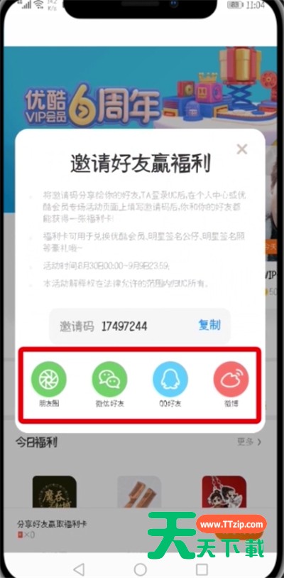 有很多人不了解UC浏览器怎么领福利卡,那么今天天天下载就在这里给大家分享一点我的小经验,希望可以给你们带来帮助。 UC浏览器中领福利卡的详细教程 1、打开UC浏览器,点击“我的” 2、在UC福利社找到“优酷月卡免费领” 3、点击最下方“填写邀请码”即可获取一张福利卡 4、点击“分享好友” 5、选择方式发送好友即可领取福利卡 以上就是天天下载为大家带来的UC浏览器怎么领福利卡操作方法,更多手机教程尽在天天下载! @天天下载 除特别注明外,本站所有文章均为 天天下载 原创,转载请注明出处来自 https://www.ttzip.com/51482.html