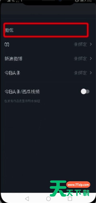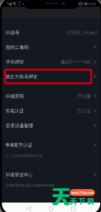 近日有一些小伙伴咨询天天下载关于在抖音中怎么绑定微信微博呢?下面就为大家带来了抖音绑定微信微博的详细步骤,有需要的小伙伴可以来了解了解哦。 抖音绑定微信微博的详细步骤 1、打开抖音,点击“我的” 2、点击右上方“三点”图标 3、点击“账号与安全” 4、点击“第三方账号绑定” 5、选择帐号 6、点击“确认登录”即可 以上就是天天下载为大家带来的抖音怎么绑定微信微博操作方法,更多手机教程尽在天天下载! @天天下载 除特别注明外,本站所有文章均为 天天下载 原创,转载请注明出处来自 https://www.ttzip.com/51487.html