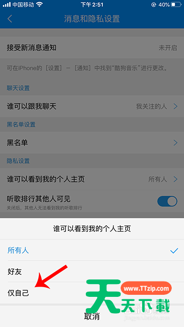 酷狗音乐主页隐私设置的操作步骤