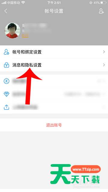 4、帐号和隐私打开后,点击“消息和隐私设置”。