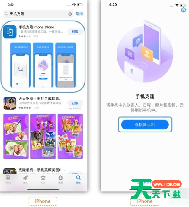 2、建立新旧手机的连接在新手机上,点开【手机克隆】>【这是新手机】>【ipnone5及之后的手机】:
