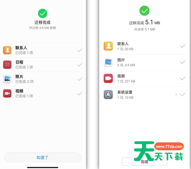 3、数据加载完后,便开始自动迁移到新手机了。