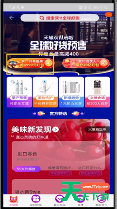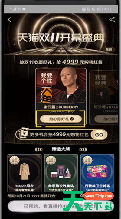 在淘宝怎么抽红包呢?下面就为大家分享淘宝中抽红包的简单操作教程,有需要的可以来了解了解哦。 淘宝中抽红包的简单操作教程 1、首先我们打开淘宝 2、点击首页 3、点击尖货预售开启 4、点击双十一开幕盛典 5、点击抽心愿好礼 6、击领取即可 以上就是天天下载为大家带来的淘宝怎么抽红包的操作方法,更多手机教程尽在天天下载! @天天下载 除特别注明外,本站所有文章均为 天天下载 原创,转载请注明出处来自 https://www.ttzip.com/52952.html