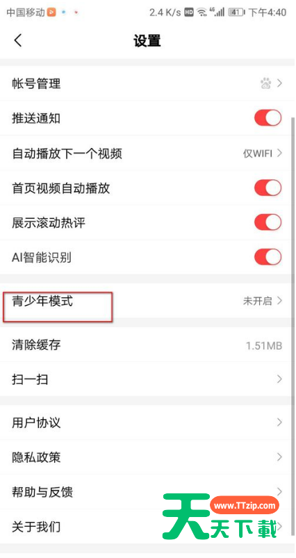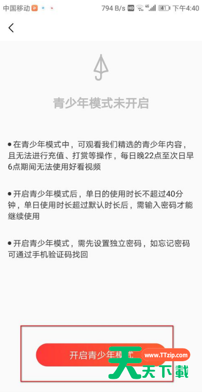 最近百度视频中新增了青少年模式,大家知道怎么操作呢?下面就是关于百度视频中青少年模式的设置过程,希望大家喜欢。 百度视频中青少年模式的设置过程 1、点击打开百度视频app,点击右下角的“我的”。 2、然后在个人页面点击右上角的“设置”图标。 3、然后在设置页面上点击“青少年模式”。 4、点击页面下面的“开启青少年模式”。 5、然后设置密码,这个密码是要记得的哦!因为在关闭青少年模式的时候是需要密码的。 6、这样我们的青少年模式就成功开启了哦~ 以上内容就是百度视频中青少年模式的设置过程,大家都学会了吧。 @天天下载 除特别注明外,本站所有文章均为 天天下载 原创,转载请注明出处来自 https://www.ttzip.com/53011.html