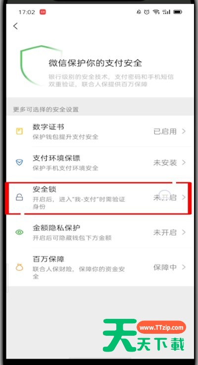 最近不少伙伴咨询微信钱包手势密码怎么设置,今天天天下载就带来了微信中设置钱包手势密码的操作教程,感兴趣的小伙伴一起来看看吧! 微信中设置钱包手势密码的操作教程 1、首先我们打开微信 2、点击右下角的我 3、点击支付 4、点击钱包 5、点击安全保障 6、点击安全锁 7、选择手势密码解锁并设置手势密码即可 以上就是天天下载为大家带来的微信钱包手势密码怎么设置的操作方法,更多手机教程尽在天天下载! @天天下载 除特别注明外,本站所有文章均为 天天下载 原创,转载请注明出处来自 https://www.ttzip.com/53146.html