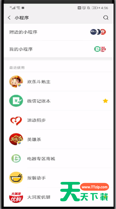 有很多新手小白还不明白微信怎么收藏小程序,所以天天下载就带来了微信中收藏小程序的简单操作教程,感兴趣的小伙伴就跟天天下载一起来学习一下吧。 微信中收藏小程序的简单操作教程 1、首先我们打开微信 2、点击发现 3、点击小程序 4、在最近使用中即可查找或者点击右上角的搜索图标,搜索要收藏的小程序名字,以查找为例点击小程序 5、点击右上角的菜单栏 6、点击添加到我的小程序即可 以上就是天天下载为大家带来的微信怎么收藏小程序的操作方法,更多手机教程尽在天天下载! @天天下载 除特别注明外,本站所有文章均为 天天下载 原创,转载请注明出处来自 https://www.ttzip.com/53223.html