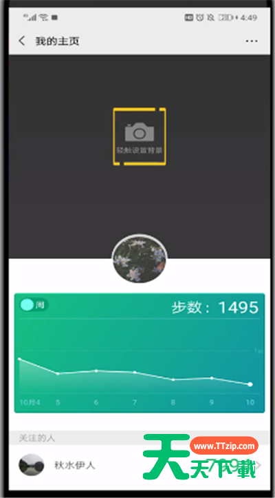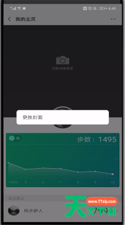 最近不少伙伴咨询微信运动主页背景怎么设置,今天天天下载就带来了微信运动设置主页背景的操作步骤,感兴趣的小伙伴一起来看看吧! 微信运动设置主页背景的操作步骤 1、首先我们打开微信 2、点击微信运动 3、点击右上角的菜单栏 4、点击进入我的主页 5、点击轻触设置背景 6、点击更换封面即可 以上就是天天下载给大家带来的全部内容,大家都学会了吗? @天天下载 除特别注明外,本站所有文章均为 天天下载 原创,转载请注明出处来自 https://www.ttzip.com/53227.html
