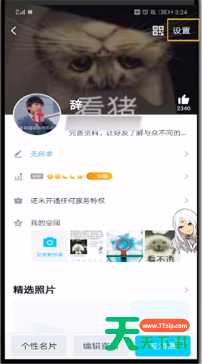 当我们在使用QQ的时候,QQ玩时怎样隐藏呢?有些小伙伴还不熟悉操作方法?下面一起去看看QQ玩时进行隐藏的操作教程,相信你会喜欢的。 QQ玩时进行隐藏的操作教程 1、首先我们打开QQ 2、点击左上角的个人头像 3、再次点击头像 4、点击右上角的设置 5、点击资料卡展示设置 6、将最近在玩取消勾选即可 以上就是天天下载为大家带来的QQ最近在玩怎么隐藏的操作方法,更多手机教程尽在天天下载! @天天下载 除特别注明外,本站所有文章均为 天天下载 原创,转载请注明出处来自 https://www.ttzip.com/53322.html