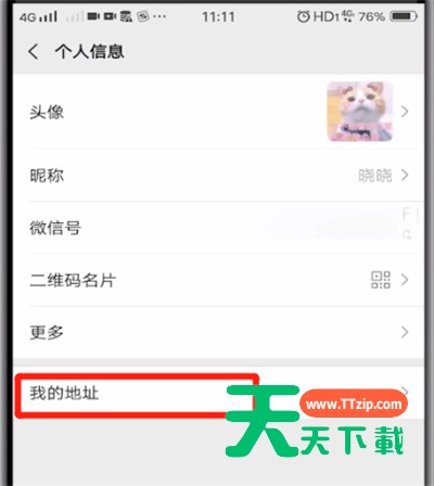 说起微信相信大家应该都不陌生,那么你们晓得微信地址怎么改吗?以下就带来了微信中进行修改地址的简单操作方法。 微信中进行修改地址的简单操作方法 1.首先我们打开微信,点击我 2.点击个人头像,点击我的地址 3.点击地址进入即可修改 以上就是天天下载为大家带来的微信地址怎么改操作方法,更多手机教程尽在天天下载! @天天下载 除特别注明外,本站所有文章均为 天天下载 原创,转载请注明出处来自 https://www.ttzip.com/53780.html