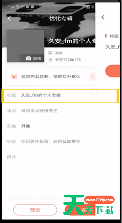 天天下载相信很多人的工作中都少不了喜马拉雅这款软件,但是你们了解如何修改标题的吗?下文这篇文章就带来了喜马拉雅中修改标题的操作教程。 喜马拉雅中修改标题的操作教程 1、首先我们打开喜马拉雅 2、点击右下角的账号 3、点击我的作品 4、点击专辑旁的菜单栏 5、点击编辑 6、点击标题 7、编辑你要修改的标题后点击保存即可 以上就是天天下载为大家带来的喜马拉雅如何修改标题的操作方法,更多手机教程尽在天天下载! @天天下载 除特别注明外,本站所有文章均为 天天下载 原创,转载请注明出处来自 https://www.ttzip.com/53792.html