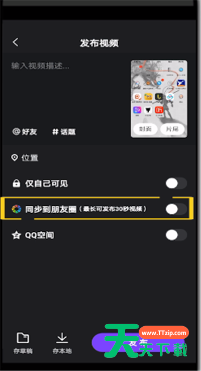 微视大家肯定都会用,有时我们想要同步小伙伴圈,应该如何操作呢?本次,天天下载就带给大家微视中同步小伙伴圈的操作教程,让生活更加丰富。 微视中同步小伙伴圈的操作教程 1、打开微视 2、点击下方的加号 3、选择拍摄一段视频或者上传本地视频,以本地视频为例点击本地 4、选择要上传的视频点击选好了 5、点击右下方的√ 6、点击下一步 7、勾选同步到朋友圈即可 以上就是天天下载为大家带来的微视怎么同步小伙伴圈的操作方法,更多手机教程尽在天天下载! @天天下载 除特别注明外,本站所有文章均为 天天下载 原创,转载请注明出处来自 https://www.ttzip.com/53826.html