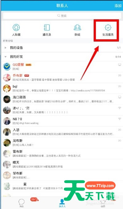 近段时间有一些在使用手机QQ的伙伴们,并不是很熟悉其中怎样发邮件的?今日在这篇文章中就带来了手机QQ中发邮件的简单教程。 手机QQ中发邮件的简单教程 1、登陆你的手机QQ,在首页面点击下方的联系人!如下图所示 2、在联系人页面点击上方的生活服务选项,如下图所示 3、在生活服务页面找到QQ邮箱提醒,点击进入,如下图所示! 4、进入QQ邮箱提醒,点击下方的写邮件按钮!如下图所示 5、输入你的邮件信息,点击发送,OK,一封来自QQ手机版的邮件诞生了 以上就是天天下载为大家带来的手机QQ怎么发邮件的全部内容了, 更多手机教程尽在天天下载! @天天下载 除特别注明外,本站所有文章均为 天天下载 原创,转载请注明出处来自 https://www.ttzip.com/54084.html