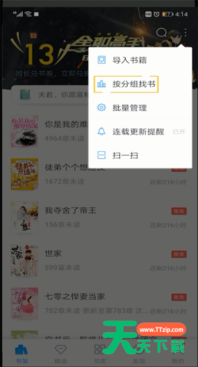 很多的用户们刚刚接触QQ阅读,还不熟悉怎样进行分组设置?今日在此篇文章内天天下载就为你们带来了QQ阅读分组设置的具体操作教程。 QQ阅读分组设置的具体操作教程 1、打开QQ阅读 2、打开书架 3、点击右上角的菜单栏 4、点击按分组找书 5、点击新建分组即可设置分组 以上就是天天下载为大家带来的QQ阅读分组怎么设置的操作方法,更多手机教程尽在天天下载! @天天下载 除特别注明外,本站所有文章均为 天天下载 原创,转载请注明出处来自 https://www.ttzip.com/54357.html