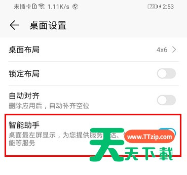 大家知道荣耀9x怎么关闭负一屏吗?下文天天下载就带来荣耀9x关闭负一屏的操作方法,相信对大家会有所帮助的,一起来看看吧! 荣耀9x关闭负一屏的操作方法 1、打开荣耀9x手机,然后找到“设置”并点击进入。 2、点击打开设置菜单下的【桌面和壁纸】, 3、然后我们点击打开【桌面设置】, 4、最后点击关闭【智能助手】右侧的开关即可。 以上就是荣耀9x关闭负一屏的操作方法,希望大家喜欢。 @天天下载 除特别注明外,本站所有文章均为 天天下载 原创,转载请注明出处来自 https://www.ttzip.com/54429.html