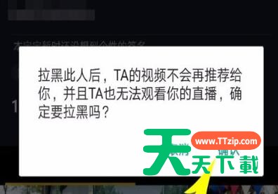 点击确认、即可将该粉丝拉黑,拉黑后,他的视频不会再推荐给你,他也不能在看你的直播。