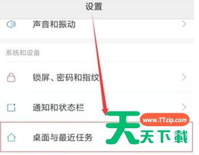 2、进入设置之后,向下滑找到【桌面与最近任务】选项,点击进入。