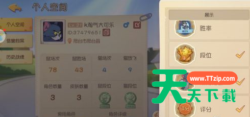猫和老鼠是现在很多玩家都喜欢玩的手机游戏,那么你们知道猫和老鼠段位怎么隐藏吗?下文就为各位带来了猫和老鼠中隐藏段位的方法,感兴趣的玩家赶快一起来下文看看吧。 猫和老鼠段位怎么隐藏?猫和老鼠中隐藏段位的方法 首先进入游戏首页,点击左上角的【头像】。 然后点击个人资料右下角的【设置】按钮。 右边会有设置的所有东西,将页面往上滑。 看到【段位】。 将【段位】取消选中状态。 然后个人资料页面就看不到段位显示了。 谢谢大家的阅读观看猫和老鼠中隐藏段位的方法,更多精彩攻略请关注天天下载! 手游攻略 除特别注明外,本站所有文章均为 天天下载 原创,转载请注明出处来自 https://www.ttzip.com/5483.html