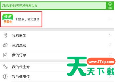 亲们或许不知道快速问医生快速登录的详细操作,那么今天天天下载就讲解快速问医生快速登录的操作步骤哦,希望能够帮助到大家呢。快速问医生快速登录的详细操作 1、在快速问医生“我的”界面中,点击界面上方的“未登录,请先登录”; 2、在“登录”界面中,可以选择“账号登录”、“手机快捷登录”或者“微博账号登录”。 相信你们看完了以上讲解的快速问医生快速登录的具体操作步骤,应该都学会啦!@天天下载 除特别注明外,本站所有文章均为 天天下载 原创,转载请注明出处来自 https://www.ttzip.com/54936.html