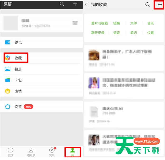 现在许多小伙伴还不知道在如何利用微信进行图片拼接,那么究竟是如何操作的呢?今日就来下文看看在如何利用微信进行图片拼接的操作教程吧利用微信进行图片拼接的操作教程 打开手机微信,点击【我】——【收藏】,进入收藏页面,点击右上角的“+”, 开始创建笔记,点击左下方的图片按钮, 进入手机图库,选择添加照片,然后点击“完成”, 回到笔记页面,点击右上角的菜单按钮,弹出选项,点击“保存为图片”, 保存到手机相册,点击查看图片效果,还可以直接发到小伙伴圈。 以上就是我为大家分享的全部内容了,更多软件教程可以关注天天下载@天天下载 除特别注明外,本站所有文章均为 天天下载 原创,转载请注明出处来自 https://www.ttzip.com/55281.html