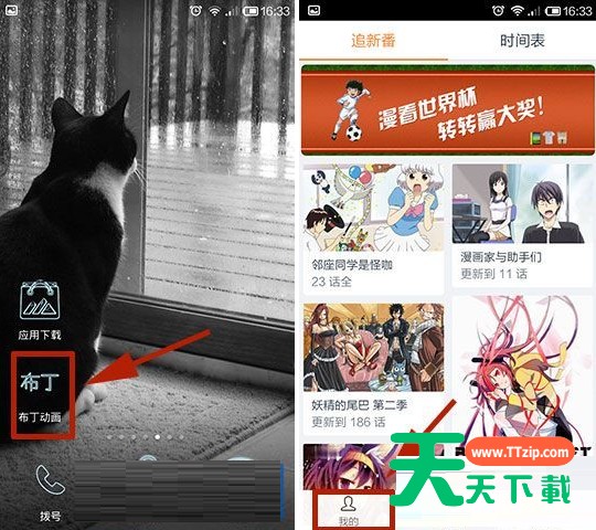 1)首先在手机桌面打开【布丁动画】,然后点击屏幕左下方【我的】。(如下图所示)
