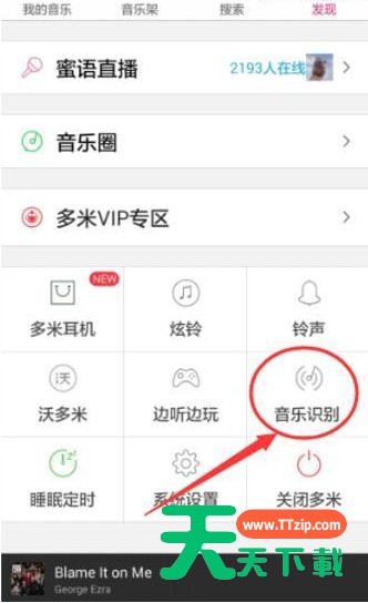 一些小伙伴使用多米音乐的过程里,还不熟悉听歌识曲功能,其实使用起来非常简单的。下面天天下载就讲解多米音乐里听歌识曲功能使用操作过程,希望可以帮助到你们。多米音乐里听歌识曲功能使用操作过程介绍 1、打开多米音乐客户端,进入到多米音乐后,点击我的音乐中的空白头像按钮,登录自己的多米帐号。 2、登录好个人帐号以后,点击发现这个功能选项,进入到发现界面以后,在界面的最下方找“音乐识别”这个功能,找到以后,点击该功能进入,如下图。 3、对那些新用户来说,刚使用多米音乐音乐识别这个功能需要再下载一个插件,点击界面中的下载按钮,如下图。 4、当您下载完成以后,再打开多米音乐这个音乐识别功能,放到你听到的歌曲旁边,不需要等很久,多米就能自动识别当前播放的音乐歌曲。 以上这里为各位分享了多米音乐里听歌识曲功能使用操作过程。有需要的小伙伴赶快来看看本篇文章吧。@天天下载 除特别注明外,本站所有文章均为 天天下载 原创,转载请注明出处来自 https://www.ttzip.com/56067.html