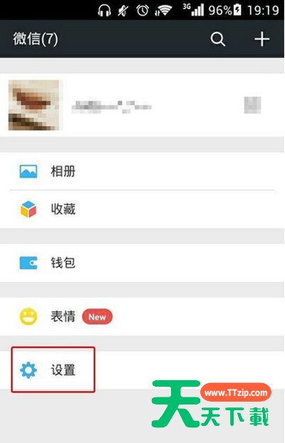 登录到微信,选择“我”进入个人设置界面,点击设置。