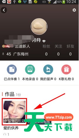 全民K歌可以说是非常受欢迎的一款APP了。那么若想分享私密作品,具体是和操作的呢?还不会操作的小伙伴就跟着天天下载一起去了解全民K歌分享私密作品的方法吧!全民K歌分享私密作品的操作流程 1、打开全民K歌软件,点击右下角“我的”,如下图; 2、选择私密上传的歌曲。一般会有个仅自己可见的加锁提示,如下图; 3、点击右上角“三点”选择“设置为公开作品”,如下图; 还不了解全民K歌分享私密作品的操作流程的小伙伴们,不要错过天天下载带来的这篇文章哦。@天天下载 除特别注明外,本站所有文章均为 天天下载 原创,转载请注明出处来自 https://www.ttzip.com/56283.html