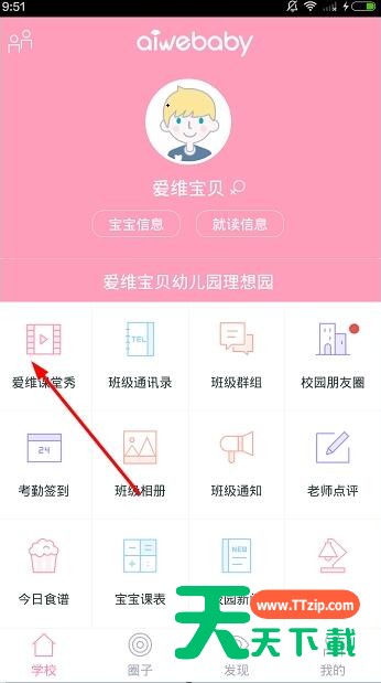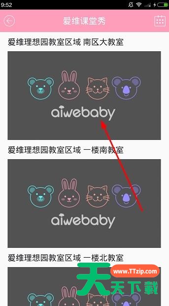 有的小伙伴还不会在爱维宝贝APP中观看视频,那么接下来就来介绍在爱维宝贝APP中观看视频的图文教程,希望对你们有所帮助哦。 在爱维宝贝APP中观看视频的图文教程 1、进入爱维宝贝之后,在“学习”模块点击“爱维课堂秀”; 2、现在你就可以选择一个你想看的视频,就看看你想看哪个班级的直播视频了哦; 3、现在就可以使用爱维宝贝看视频啦。 以上就是在爱维宝贝APP中观看视频的图文教程,大家学会了吗?@天天下载 除特别注明外,本站所有文章均为 天天下载 原创,转载请注明出处来自 https://www.ttzip.com/57801.html
