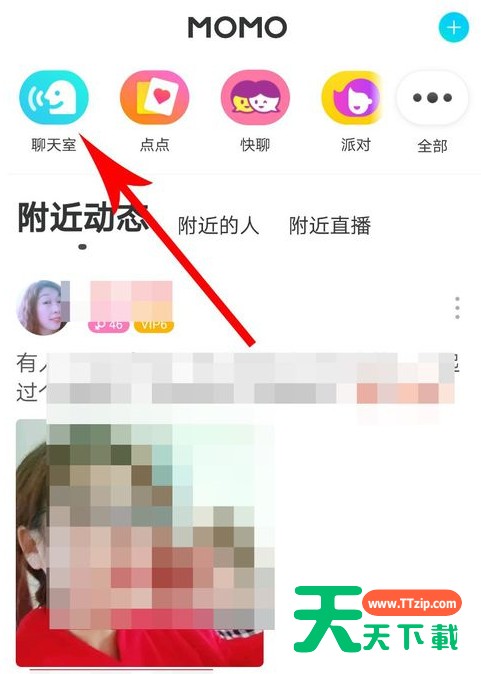 1、在查找这项功能之前,用户需要先保证自己的“陌陌”软件版本升级到了最新,然后再点击首页左上角的“聊天室”选项。
